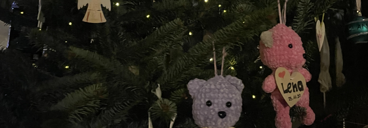 Der Erinnerungsbaum darf mit personalisiertem Baumschmuck als Gedenken an die Sternenkinder geschmückt werden, damit die verstorbenen Kinder sichtbar werden – still und liebevoll. Der Baumschmuck kann vor Ort gestaltet oder von zuhause mitgebracht und selbstständig aufgehängt werden.